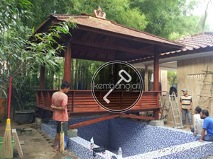 | Keterangan | pemesanan Gazebo Diatas kolam ikan Kayu kelapa, ukuran 3 x 4 m |