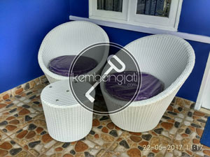 | Keterangan | Bahan rotan sintetis warna putih ,cushion merah,2 kursi 1 meja , |
