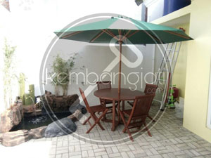 | Keterangan | Bahan kayu jati,finising natural, kain payung suntech 300cm warna hijau |